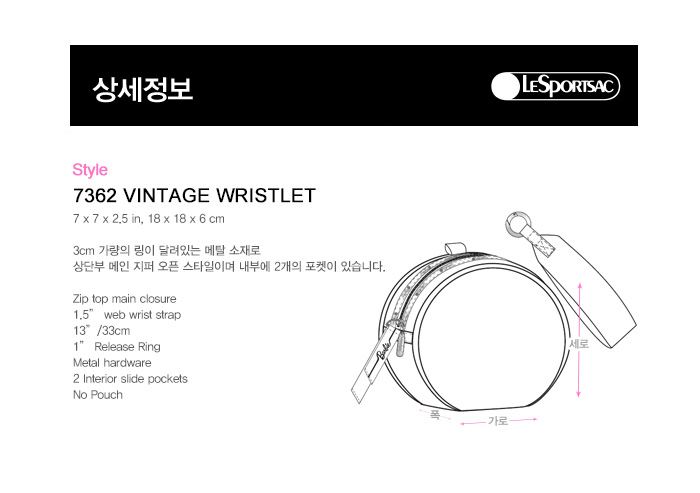 3cm 가량의 링이 달려있는 메탈 소재로 Zip top main closure |