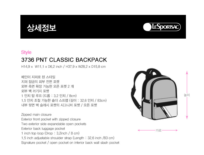 1. 레스포색 가방은 클래식 라인 전 상품 물세탁이 가능합니다. (세탁기 사용금지) 단, 일부 제품에 한해서 세탁이 불가할 수 있으니 꼭 가방 내 케어라벨 확인하여 주시기 바랍니다. 2. 세탁을 하실 때에는 중성비누를 사용하여 찬물에 손세탁 합니다. (표백제나 표백 성분이 있는 세제 사용 불가) 3. 건조 시에는 통풍이 잘 되는 곳에서 완전히 건조시켜 주세요. (드라이기 사용 불가) 건조가 완전히 이루어 지지 않은 상태에서 보관하시면 이염 등의 위험이 있습니다. 4. 레스포색 제품은 다림질이 절대 불가합니다. 5. 오염이 심하지 않은 경우에는 오염물질이 묻은 즉시 물티슈로 오염된 부위를 닦아주세요. 장기간 미세척으로 인한 오염은 완벽하게 제거되지 않을 수 있습니다. 6. 제품 사용시 손질 방법을 지켜주시기 바랍니다. |