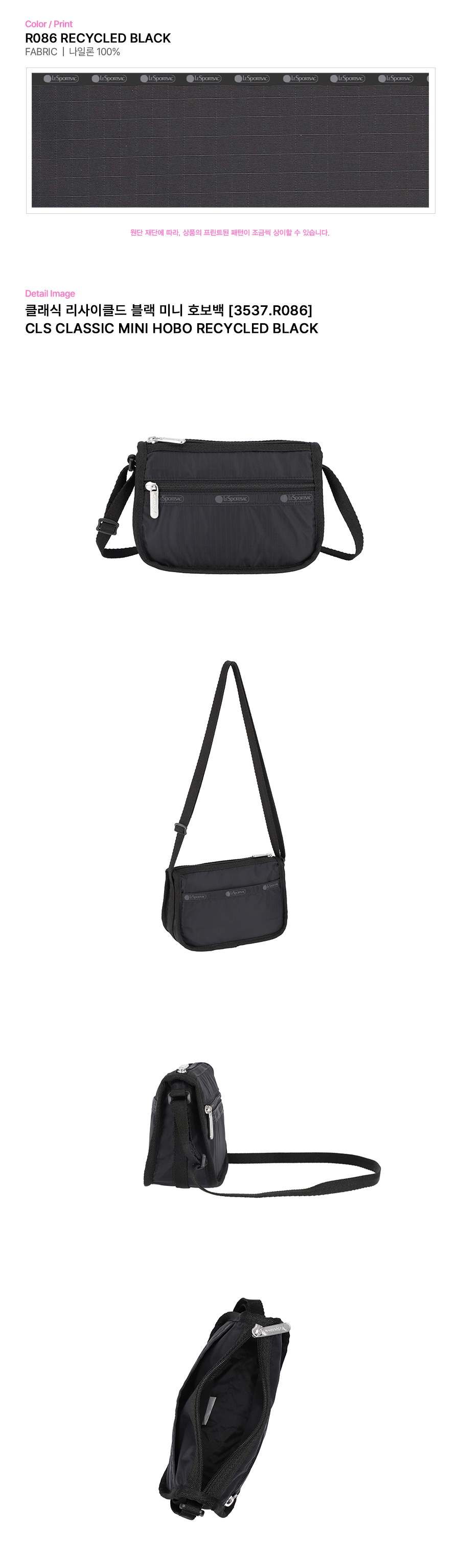 지속가능성의 이슈에 따라 재활용 소재로 만들어진 레스포색의 새로운 블랙 프린트. / 원단 재단에 따라 상품의 프린트 된 패턴이 조금씩 상이할 수 있습니다. | |