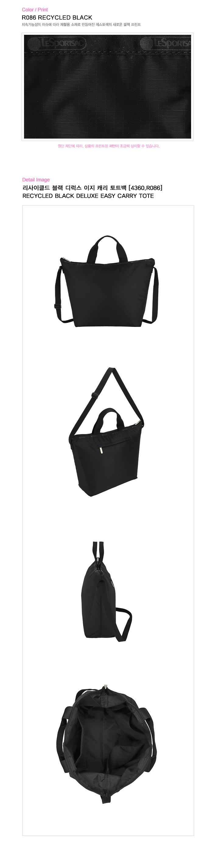 지속가능성의 이슈에 따라 재활용 소재로 만들어진 레스포색의 새로운 블랙 프린트. / 원단 재단에 따라 상품의 프린트 된 패턴이 조금씩 상이할 수 있습니다. | |