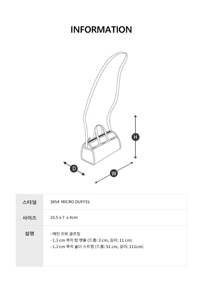 지퍼가 달린 메인 클로저 1.3cm 폭의 탑 핸들 1.3cm 폭의 숄더 스트랩 (길이: 111cm) |