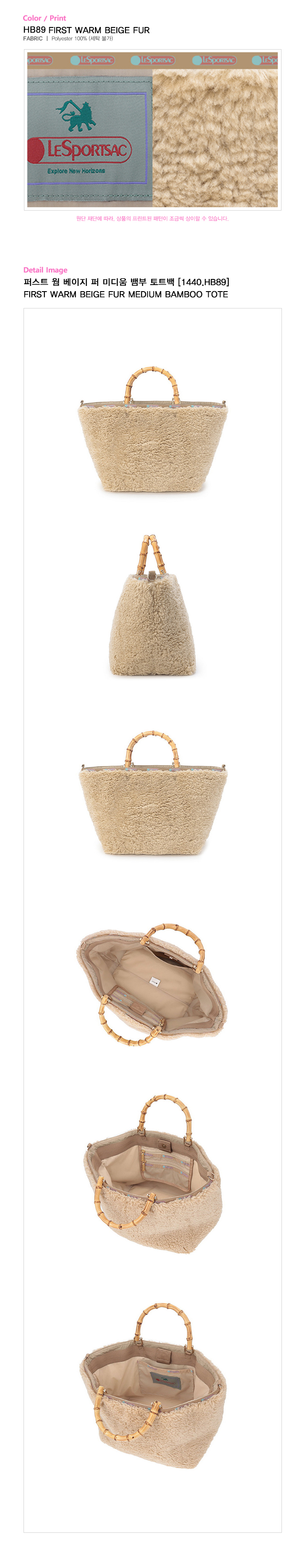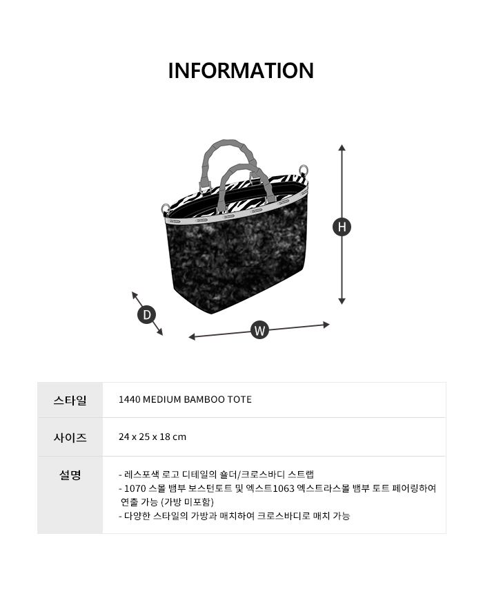 - 에코퍼와 뱀부 핸들 디테일의 보트백 - 메인 오픈 스타일 - 내부 후면 지퍼 클로징 패치 포켓과 내부 전면 오픈 포켓 - 탈착 가능 바닥판 포함 - 1448 3 TAPE 50MM 스트랩과 페어링하여 크로스바디 형태로 연출 가능 (스트랩 미포함) |