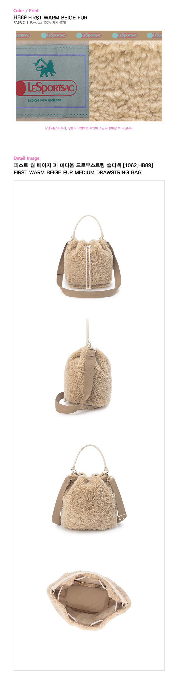 - 드로우 스트링 클로징 스타일 숄더백 - 내부 후면 지퍼 클로징 포켓 - 신테틱 레더 탑 핸들 (길이 37 cm) - 탈부착 가능한 크로스바디 스트랩 (최소 76cm / 최대 132cm) |