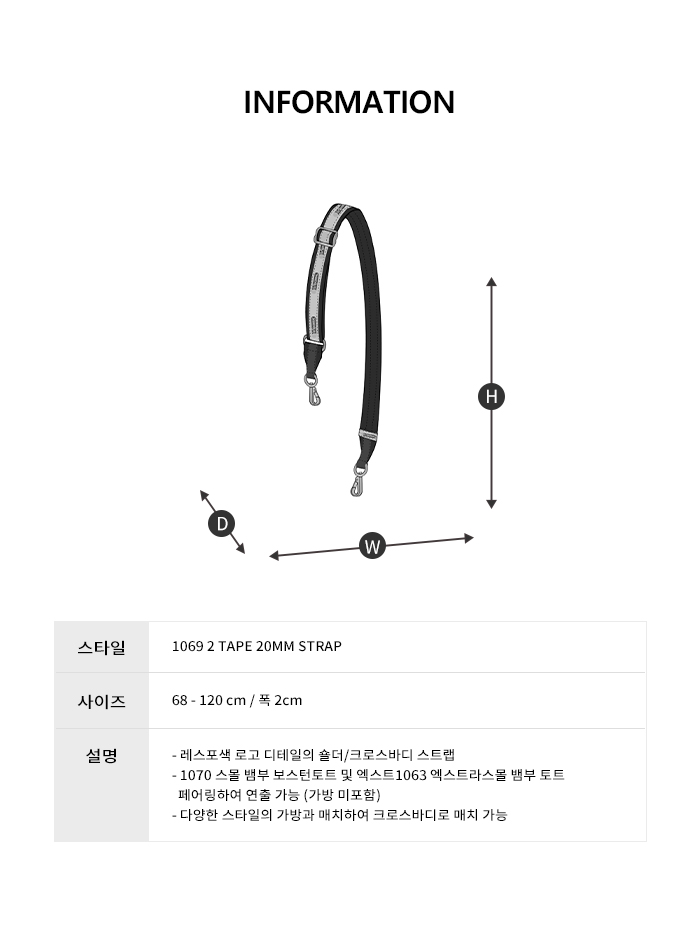 - 레스포색 로고 디테일의 숄더/크로스바디 스트랩 - 1070 스몰 뱀부 보스턴토트 및 엑스트1063 엑스트라스몰 뱀부 토트 페어링하여 연출 가능 (가방 미포함) - 다양한 스타일의 가방과 매치하여 크로스바디로 매치 가능