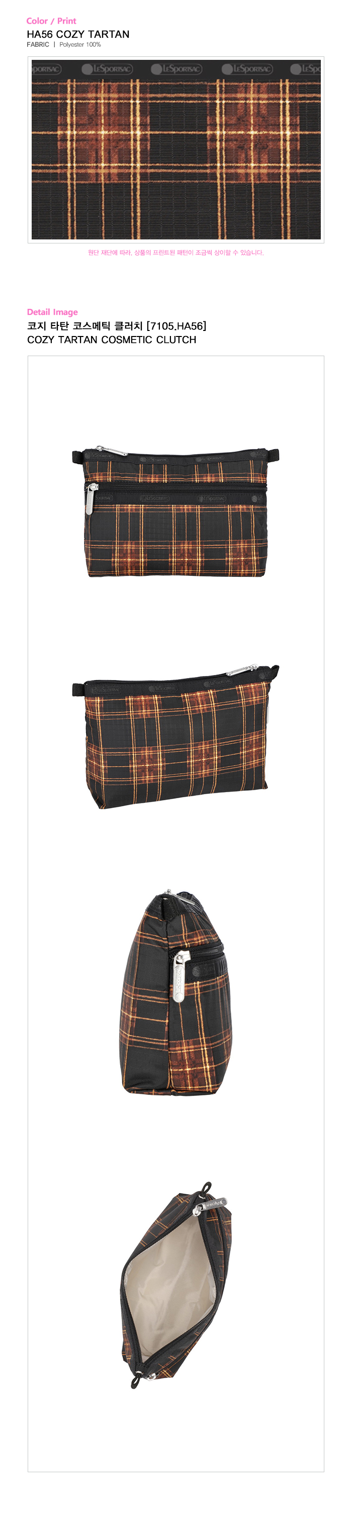 메인 지퍼 오프닝이며, 앞에 2개의 지퍼 주머니가 있는 총 3단의 지퍼 파우치이다. 각 주머니의 사이즈가 달라 종류별로 수납이 가능하다. |