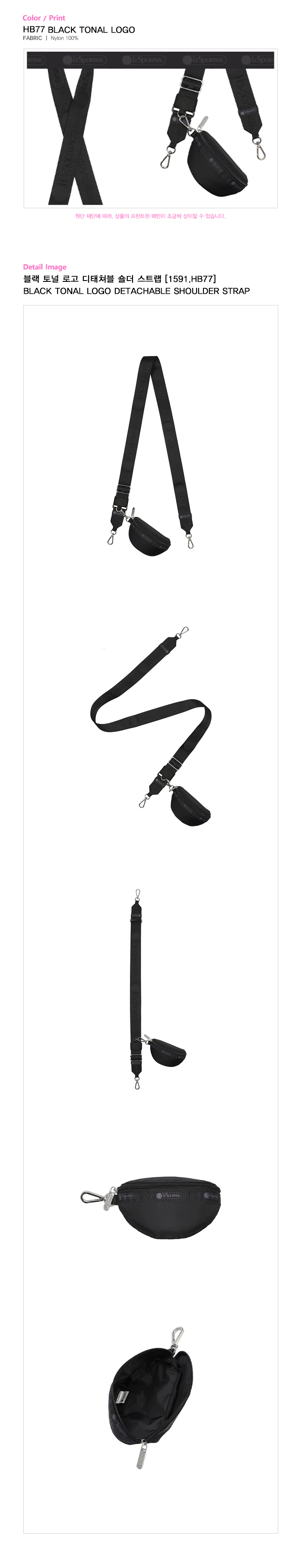 [스트랩] - 3.8cm 폭의 길이 조절 가능한 스트랩 (최소 : 67.5 cm / 최대 113 cm) - 파우치를 위한 작은 메탈 링 [파우치] - 메탈 클립이 부착된 행오프 파우치 - 지퍼 메인 클로징 스타일