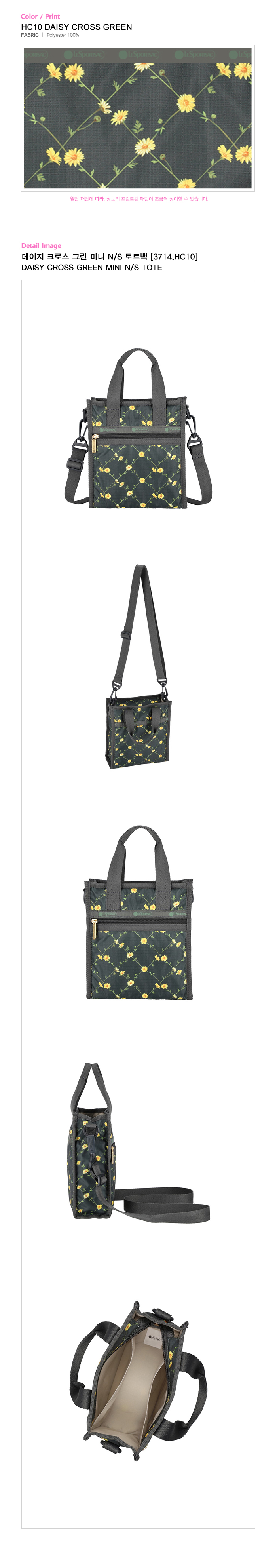 메인 지퍼 클로징 지퍼가 있는 외부 전면 포켓 내부 전면과 뒷면 오픈 포켓 2.8cm 폭의 탑 핸들(핸들 드롭: 8cm, 스트랩 길이: 27cm) 3.8cm 폭의 조절/분리 가능한 어깨끈 (최대: 127cm, 최소:67cm)