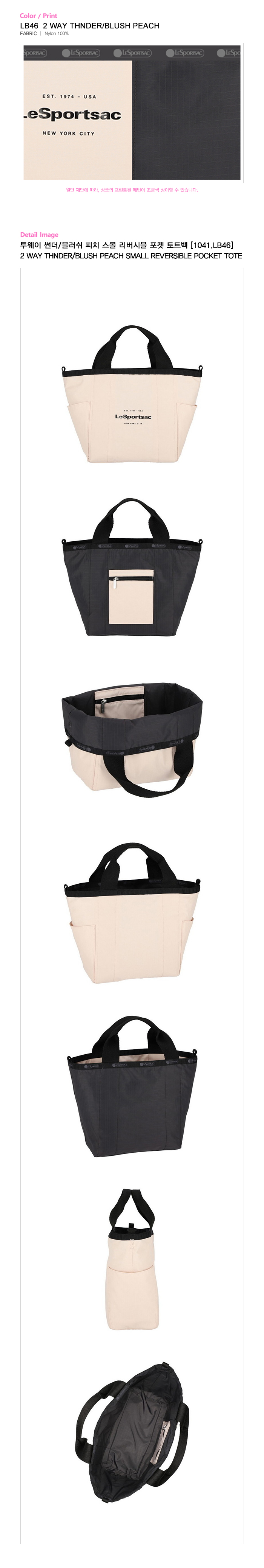 - 핀칭 핸들이 있는 리버시블 토트백 - 외부 전면 지퍼 포켓 - 내부 측면 슬래시 포켓 - 3.8cm 폭의 스트랩 (드롭 : 11cm, 길이 : 37cm) |