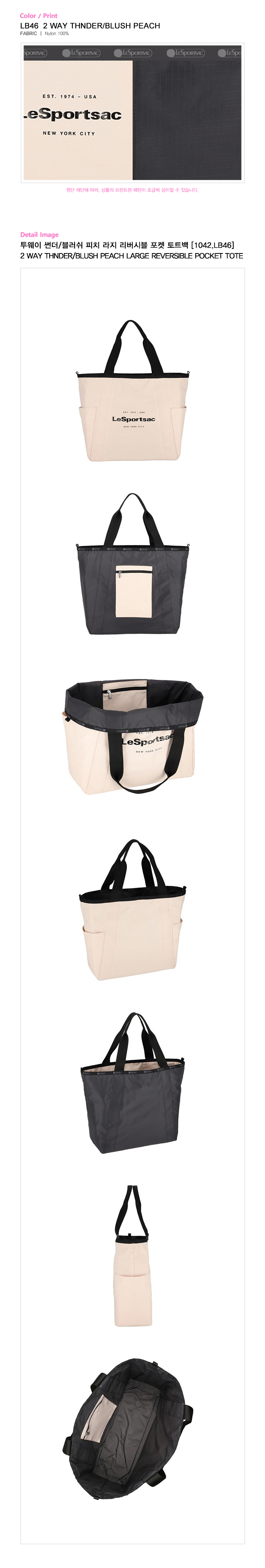 - 핀칭 핸들이 있는 리버시블 토트백 - 외부 전면 지퍼 포켓 - 내부 측면 슬래시 포켓 - 3.8cm 폭의 스트랩 (드롭 : 22.5cm, 길이 : 50cm)