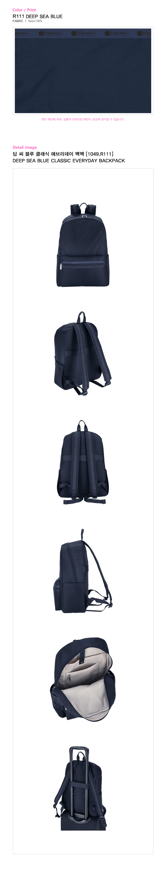 - 듀얼 지퍼 메인 클로징 스타일 - 외부 전면 지퍼 박스 포켓 - 외부 후면 3.8cm 폭의 러기지 스트랩 (캐리어 손잡이에 끼울 수 있는 형태) - 외부 각 측면 포켓 - 스냅 클로저가 있는 노트북용 내부 후면 슬래시 포켓 - 2.5cm 폭의 패딩 처리 된 숄더 스트랩 (길이 : 46.5 cm) |