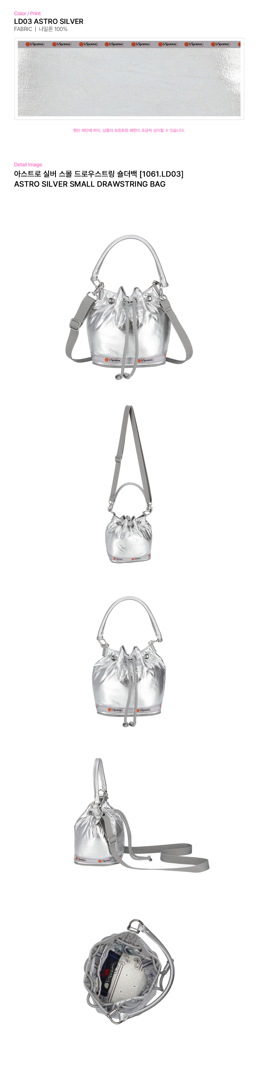 - 드로우 스트링 클로징 스타일 숄더백 - 내부 후면 지퍼 클로징 포켓 - 신테틱 레더 탑 핸들 (길이 31 cm) - 탈부착 가능한 크로스바디 스트랩 (최소 77cm / 최대 134cm) |