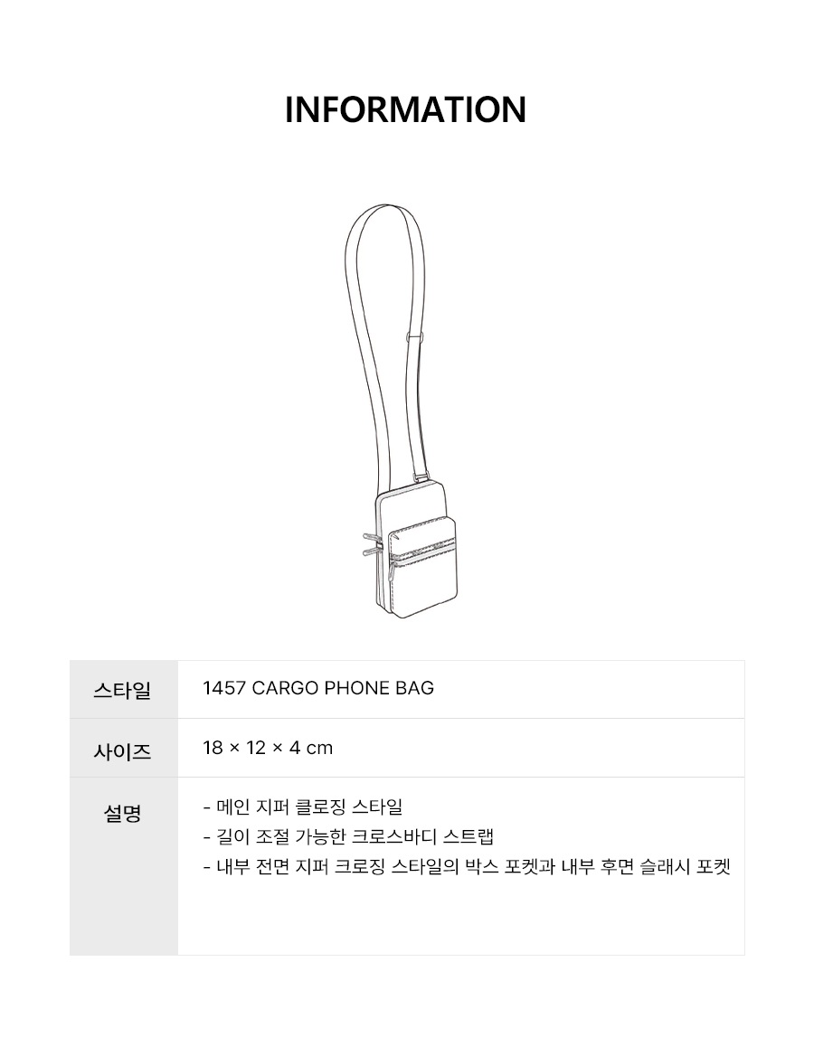 - 메인 지퍼 클로징 스타일 - 길이 조절 가능한 크로스바디 스트랩 - 내부 전면 지퍼 크로징 스타일의 박스 포켓과 내부 후면 슬래시 포켓 |