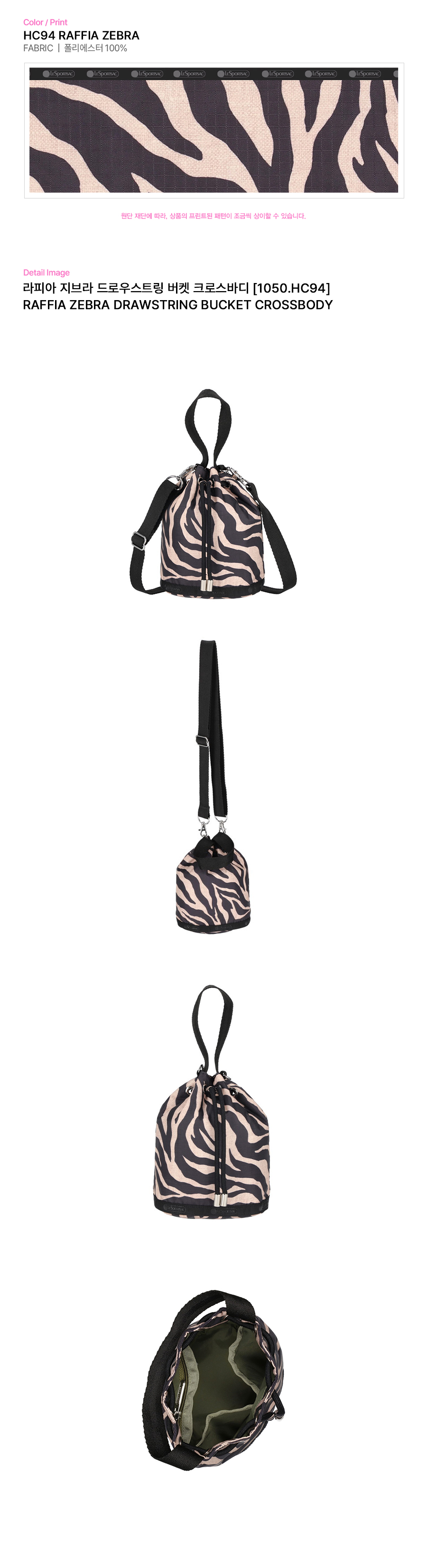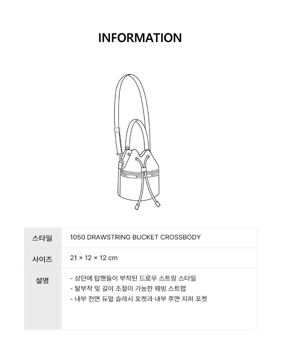 - 상단에 탑핸들이 부착된 드로우 스트링 스타일 - 탈부착 및 길이 조절이 가능한 웨빙 스트랩 - 내부 전면 듀얼 슬래시 포켓과 내부 후면 지퍼 포켓 |
