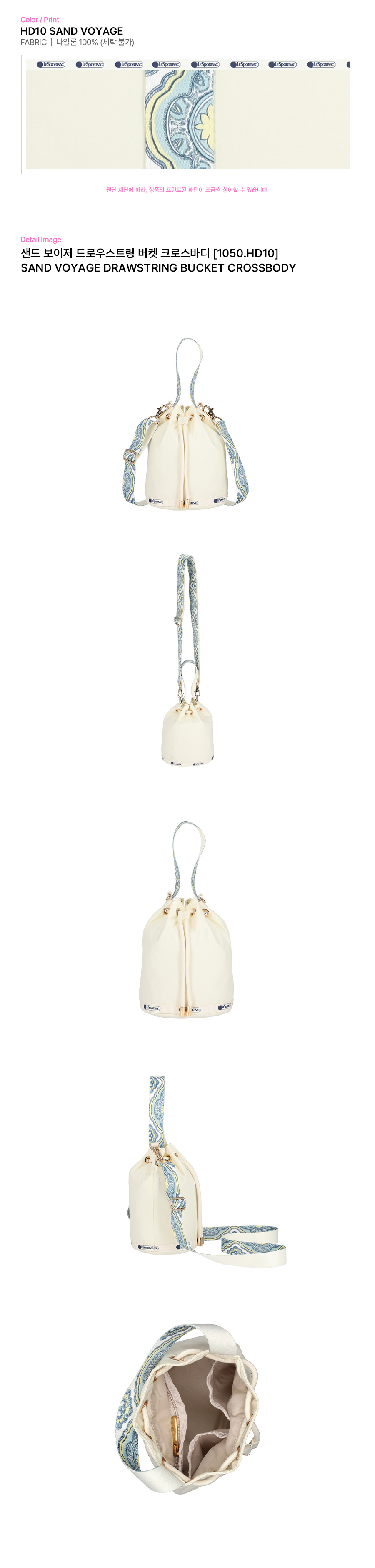 - 상단에 탑핸들이 부착된 드로우 스트링 스타일 - 탈부착 및 길이 조절이 가능한 웨빙 스트랩 - 내부 전면 듀얼 슬래시 포켓과 내부 후면 지퍼 포켓 |