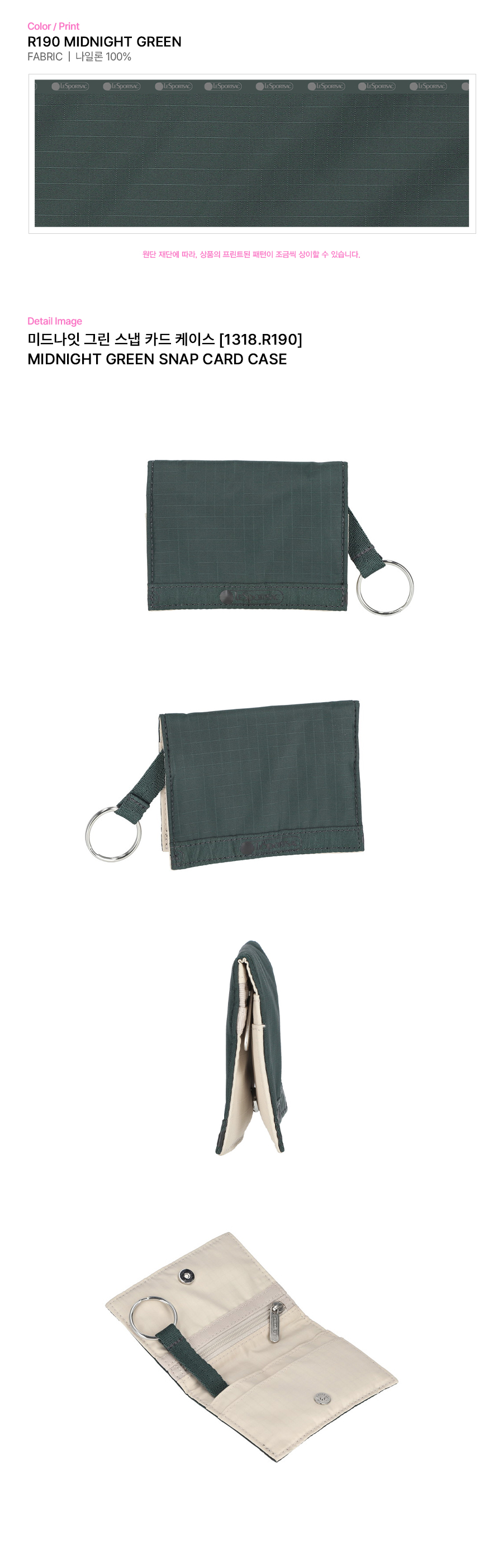 - 자석 스냅 클로징 스타일의 카드 케이스 - 내부 좌측 지퍼 포켓과 우측 2개의 카드 슬롯 - 키링 및 작은 액세서리를 걸 수 있는 링 스트랩 |