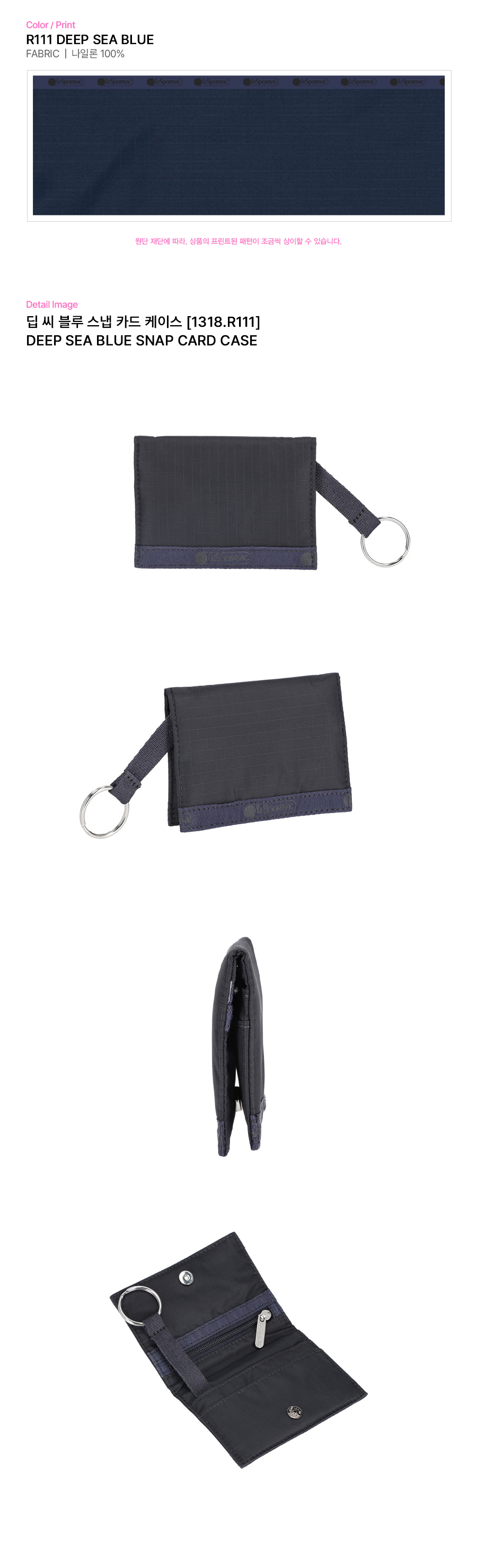 - 자석 스냅 클로징 스타일의 카드 케이스 - 내부 좌측 지퍼 포켓과 우측 2개의 카드 슬롯 - 키링 및 작은 액세서리를 걸 수 있는 링 스트랩 |