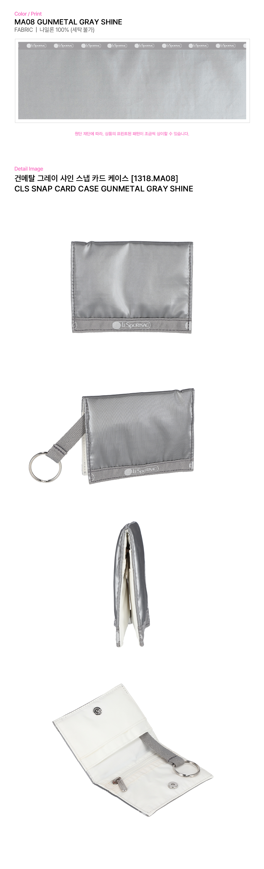 - 자석 스냅 클로징 스타일의 카드 케이스 - 내부 좌측 지퍼 포켓과 우측 2개의 카드 슬롯 - 키링 및 작은 액세서리를 걸 수 있는 링 스트랩 |