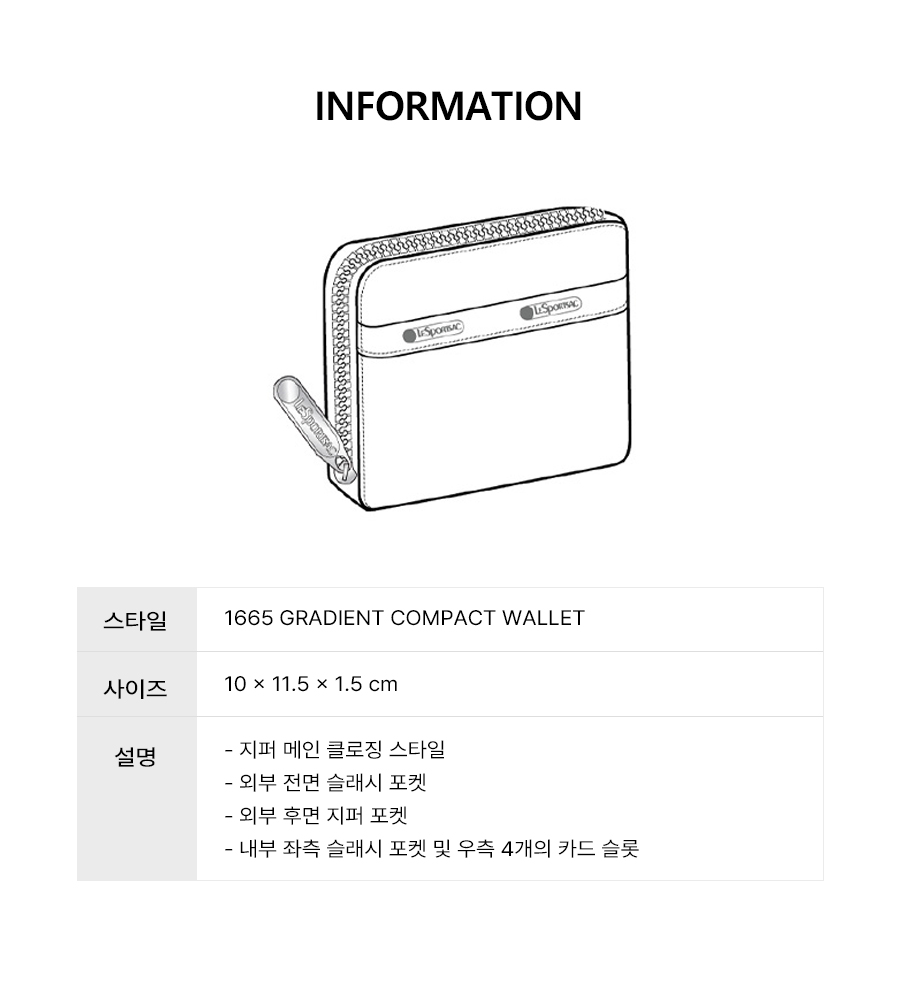 - 지퍼 메인 클로징 스타일 - 외부 전면 슬래시 포켓 - 외부 후면 지퍼 포켓 - 내부 좌측 슬래시 포켓 및 우측 4개의 카드 슬롯