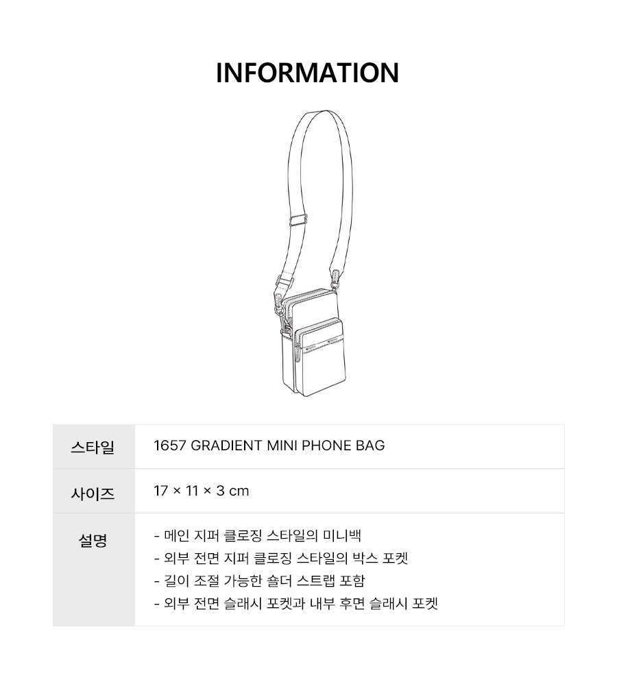 - 메인 지퍼 클로징 스타일의 미니백 - 외부 전면 지퍼 클로징 스타일의 박스 포켓 - 길이 조절 가능한 숄더 스트랩 포함 - 외부 전면 슬래시 포켓과 내부 후면 슬래시 포켓