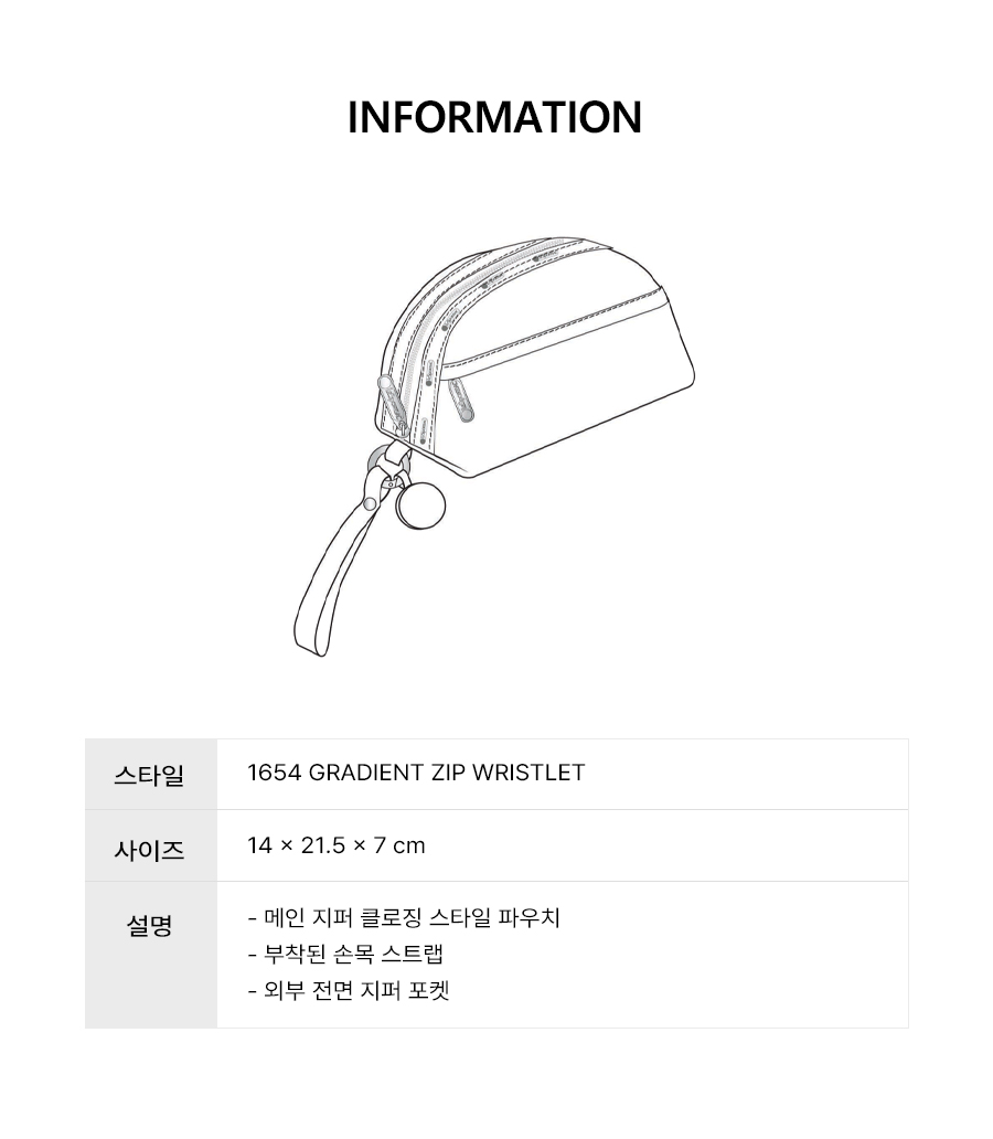 - 메인 지퍼 클로징 스타일 파우치 - 부착된 손목 스트랩 - 외부 전면 지퍼 포켓