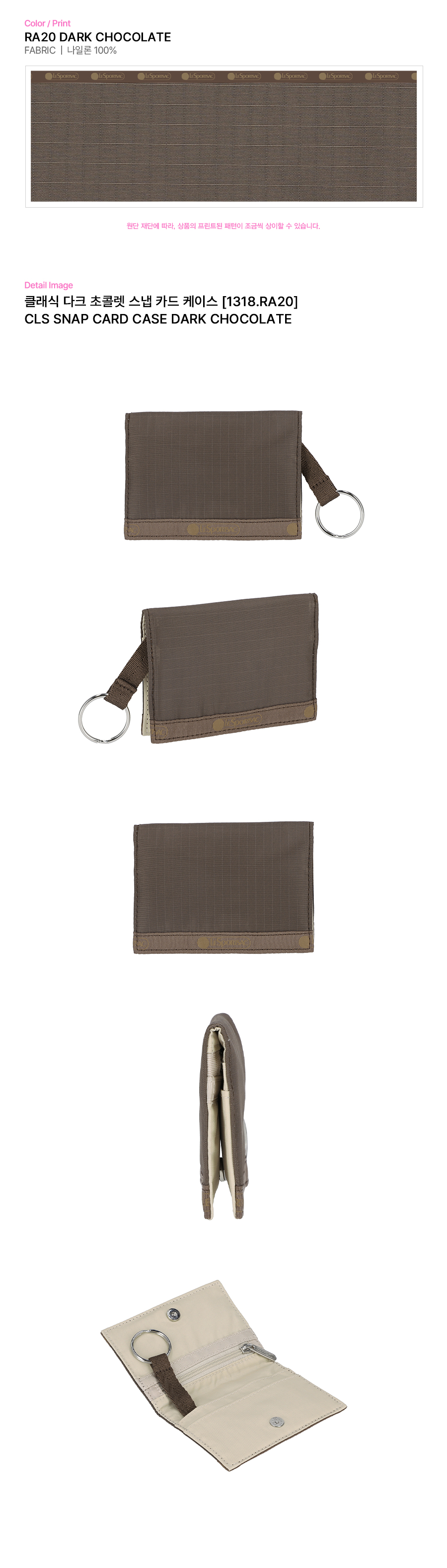 - 자석 스냅 클로징 스타일의 카드 케이스 - 내부 좌측 지퍼 포켓과 우측 2개의 카드 슬롯 - 키링 및 작은 액세서리를 걸 수 있는 링 스트랩 |