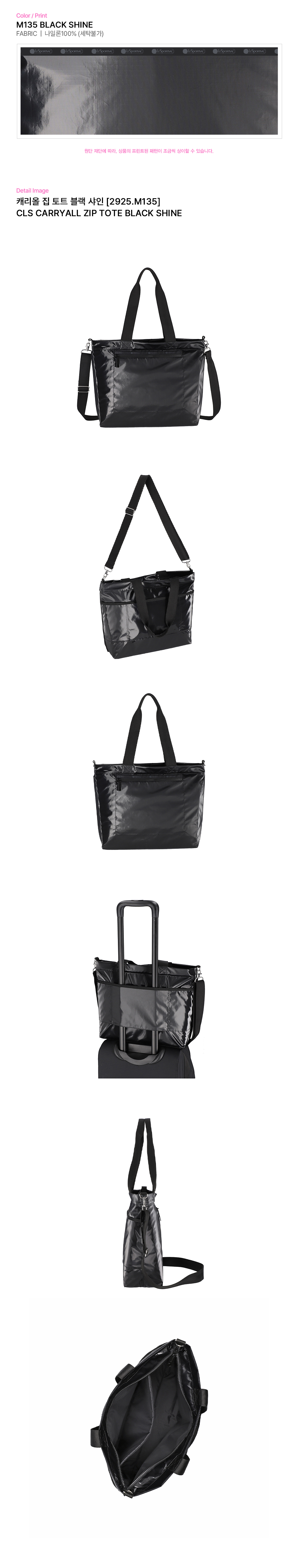 - 지퍼 클로징 스타일 토트백 - 외부 전면 지퍼 포켓 - 외부 후면 캐리어 손잡이에 끼울 수 있는 러기지 포켓 - 내부 후면 노트북 수납에 용이한 슬래시 포켓