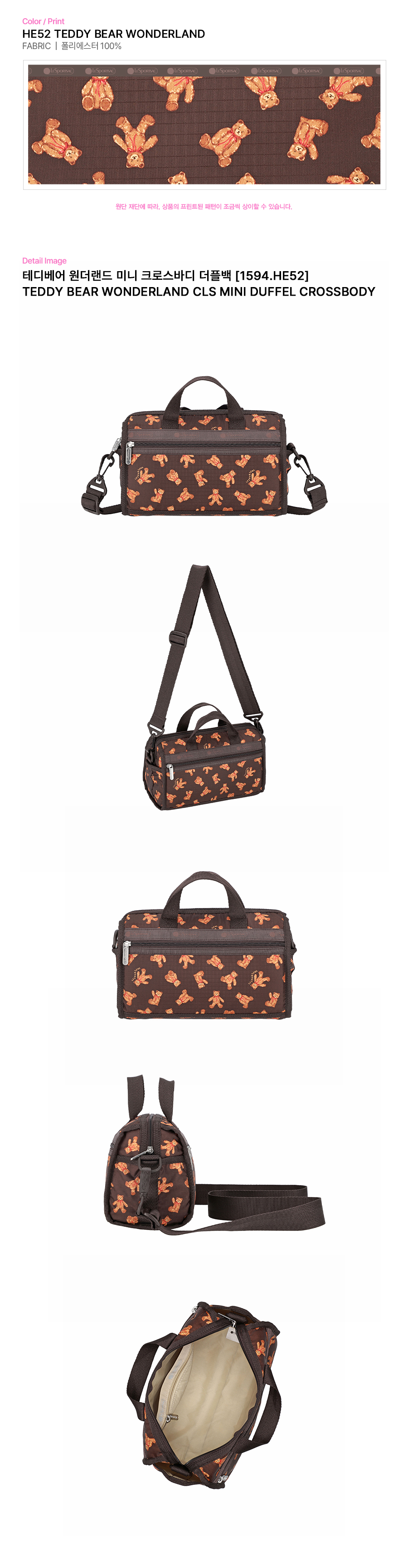- 지퍼 메인 클로징 스타일 - 외부 전면, 후면, 측면 지퍼 포켓 - 내부 후면 지퍼 / 슬래시 포켓 - 2.5cm 폭의 웨빙 핸들 (드롭 5cm / 길이 19cm) - 3.8cm 폭의 길이 조절 가능한 탈부착 숄더 스트랩 (최대 127cm / 최소 68cm) |