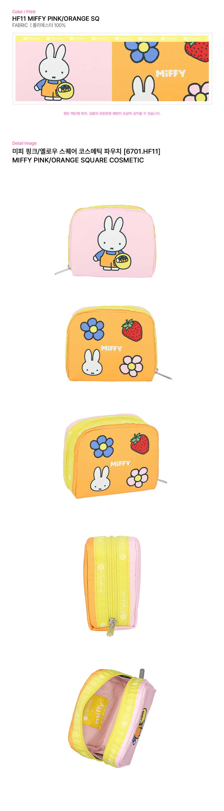 정사각형 모양의 파우치로 지퍼 잠금 스타일이다. 화장품이나 여성용품 등 간단한 소지품을 수납하기에 좋다.