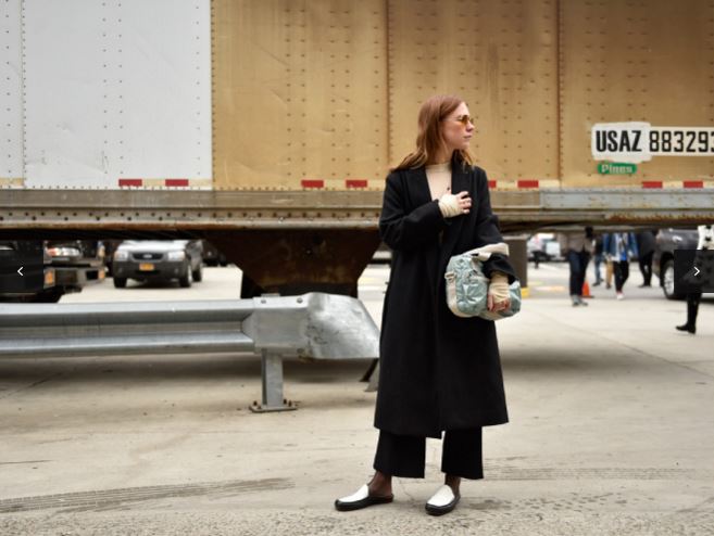 match the lace-up shoes to suit the style of the boxy jacket, also a black backpack